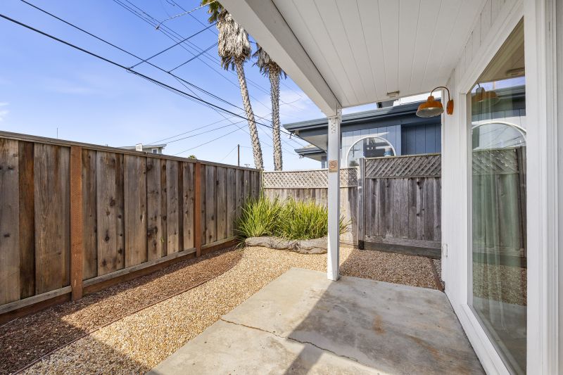 Experience the ultimate Pleasure Point lifestyle on East Cliff Drive, one of Santa Cruz's most sought-after destinations. Whether you love surfing, biking, walking, dining, or shopping, this location has it all. This immaculate and beautifully maintained property features an interior designer-selected Benjamin Moore paint palette. The living room boasts a marble stack stone gas fireplace and a 55” wall-mounted Samsung TV. The chef’s kitchen is equipped with Professional Series stainless steel appliances, including an electric freestanding range, refrigerator, dishwasher, microwave, and disposal, complemented by marble countertops and a glass tile backsplash. The gorgeous spa-style bathroom includes a glass tile tub/shower surround with a rain head and marble countertops. The large bedroom offers wool carpet and a dual closet kit. Other amenities include Milgard dual pane windows with custom window treatments, a Nest Thermostat, gated entry, a private xeriscaped backyard with a patio and outdoor shower, and off-street parking. This unit is ground level for easy access. This quintessential beach community is one of the most vibrant surf destinations along the California coast. You'll be close to the beach, Pleasure Point Park, Point Market, 41st Avenue, a movie theater, a farmers market, and The Village at Capitola. Enjoy a smoke-free property and embrace the best of coastal living.